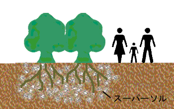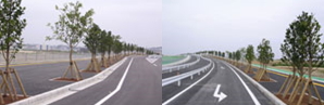 道路沿線における植栽は、排気ガス等劣悪な環境のもとでの生育となります。スーパーソルを土に15%程度混合することによって、通気性、排水性を高め、土台である根を活性化させ、活力ある植生を持続させます。