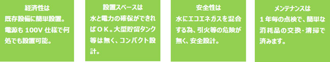 近年の研究で水素は身体に最も有害な活性酸素(ヒドロキシラジカル)を除去することが判明しました。水素ガスを体内に取り込むことで、ダイエットや美容、病気の回復、アンチ・エイジングに大変効果があります。 弊社では、この効果を活用し、水素水飲料だけでなく、温泉やプールの水までも水素水にして、体全体で水素を吸収し、健康保持の為に役立てる、水素を活用した【水素水貯留システム】装置です。